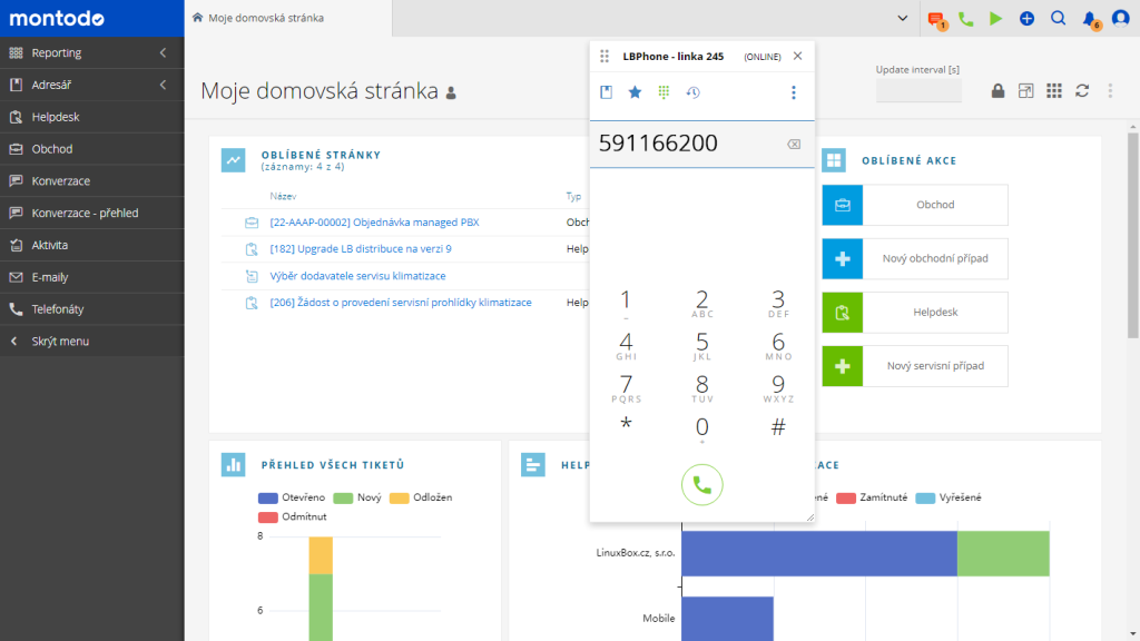 • Kontrola a reporting: Systém umožňuje detailní sledování všech komunikačních kanálů, což přispívá k lepší analýze výkonu a optimalizaci procesů.