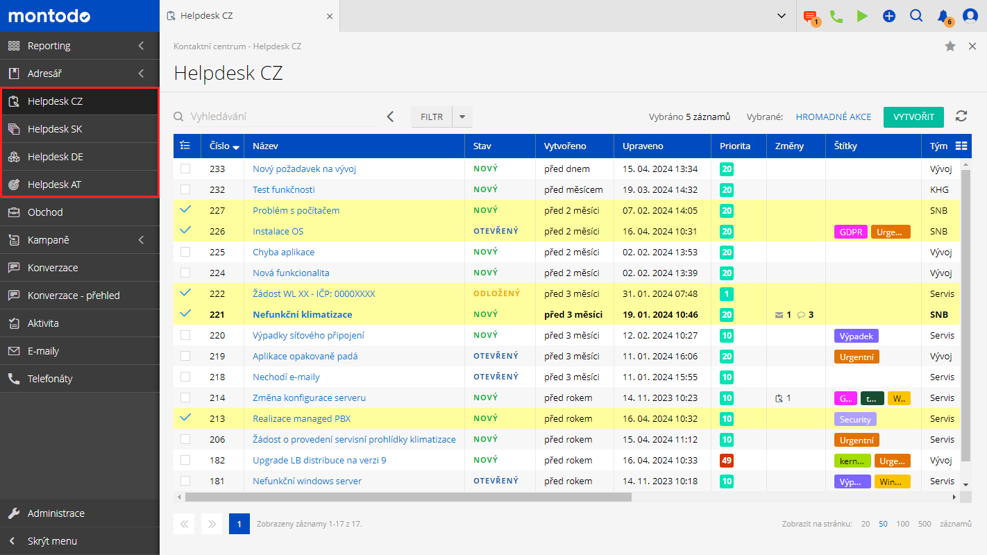 • Kategorizace a priorizace: tickety se řadí podle kategorií (např. technická podpora, fakturace, reklamace) a úrovně priority (nízká, střední, vysoká).
